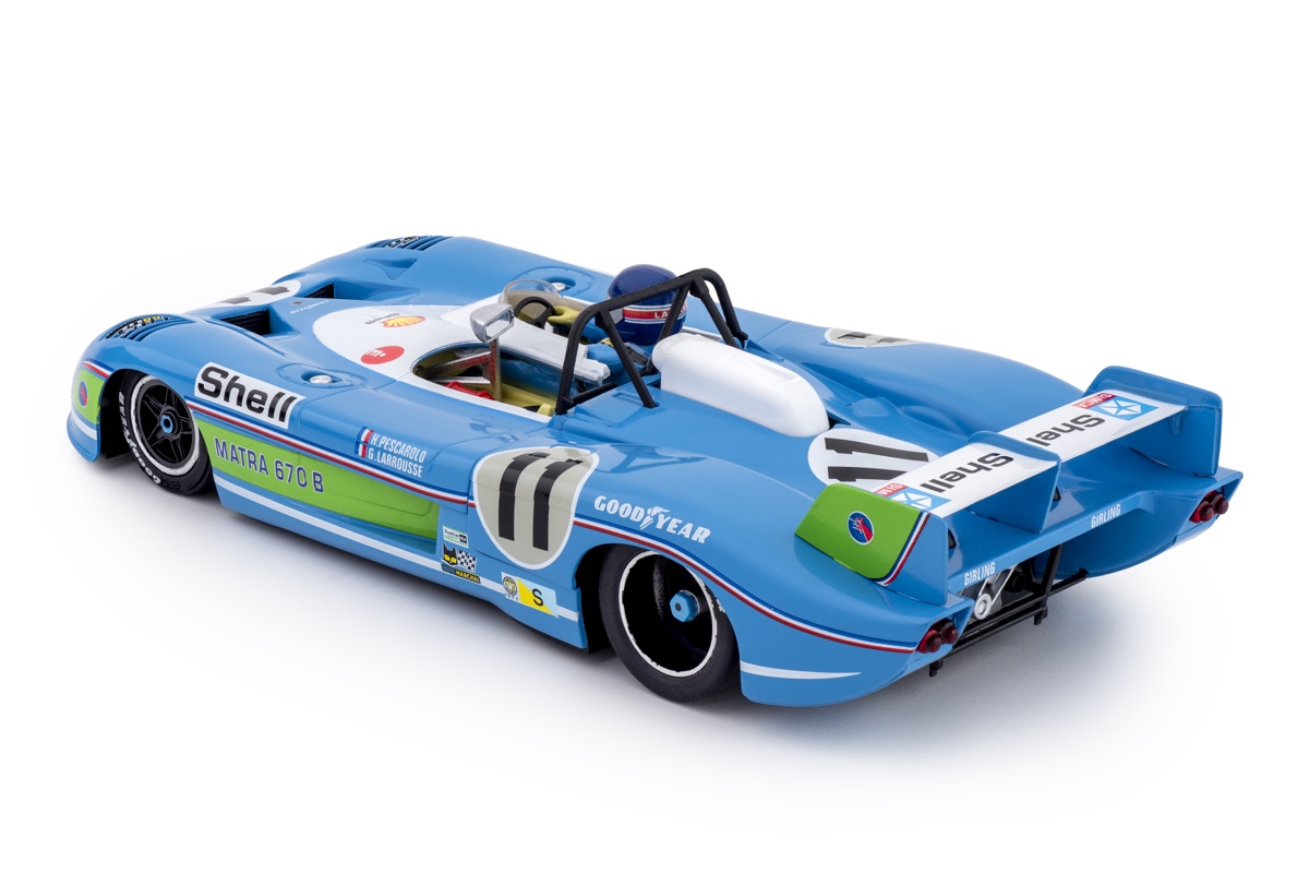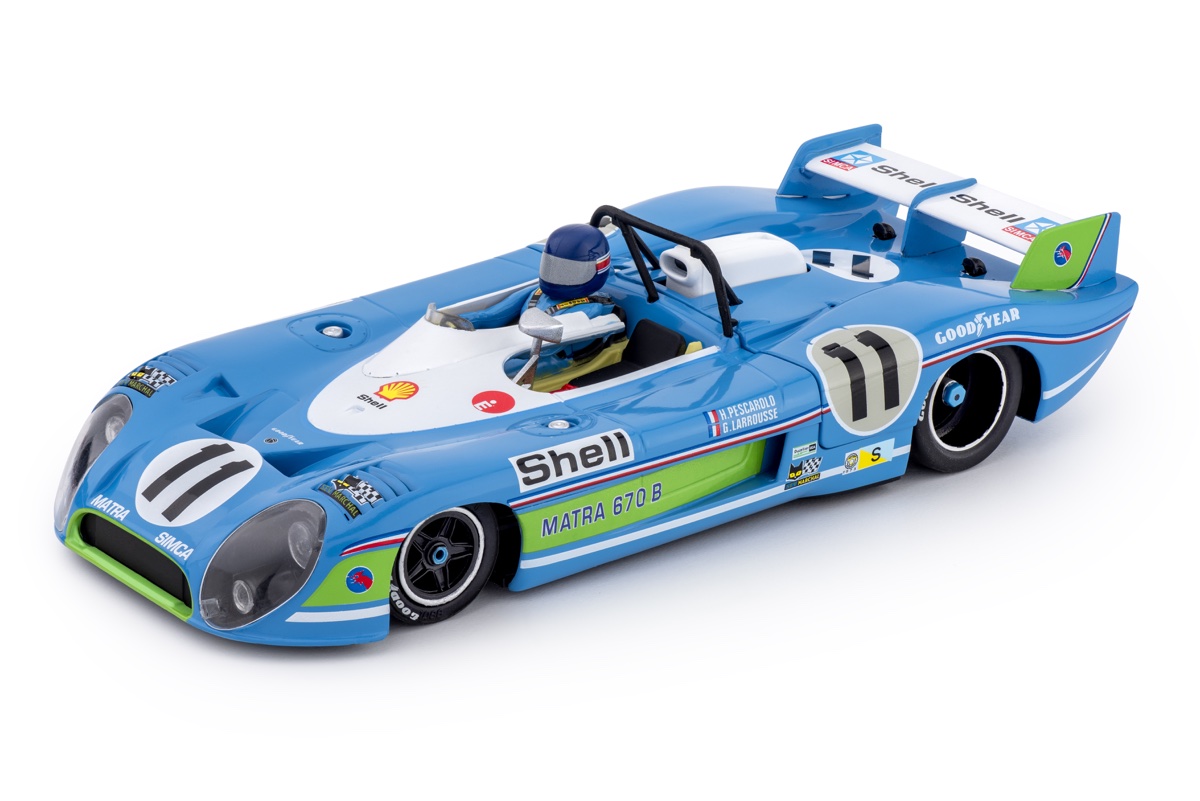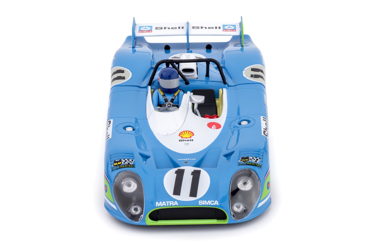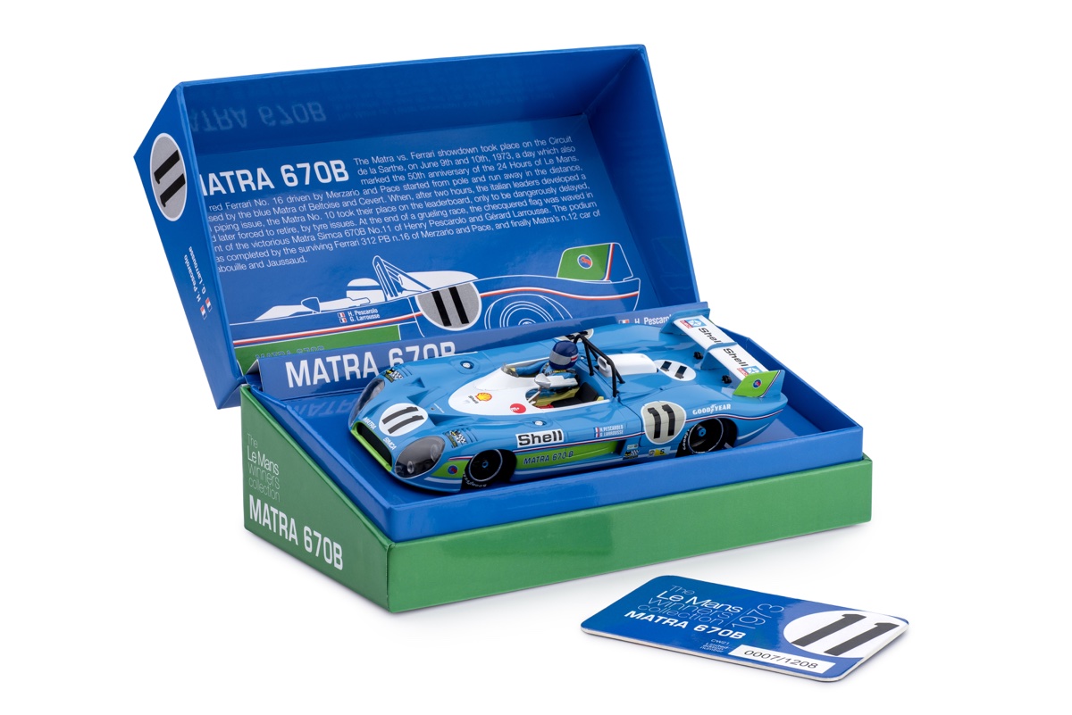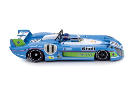 The Matra vs. Ferrari showdown took place on the Circuit de la Sarthe, on June 9th and 10th, 1973, a day which also marked the 50th anniversary of the 24 Hours of Le Mans. The red Ferrari No. 16 driven by Merzario and Pace started from pole and run away in the distance, chased by the blue Matra of Beltoise and Cevert. When, after two hours, the italian leaders developed a fuel piping issue, the Matra No. 10 took their place on the leaderboard, only to be dangerously delayed, and later forced to retire, by tyre issues. At the end of a grueling race, the checquered flag was waved in front of the victorious Matra Simca 670B No.11 of Henry Pescarolo and Gérard Larrousse. The podium was completed by the surviving Ferrari 312 PB n.16 of Merzario and Pace, and finally Matra’s n.12 car of Jabouille and Jaussaud.